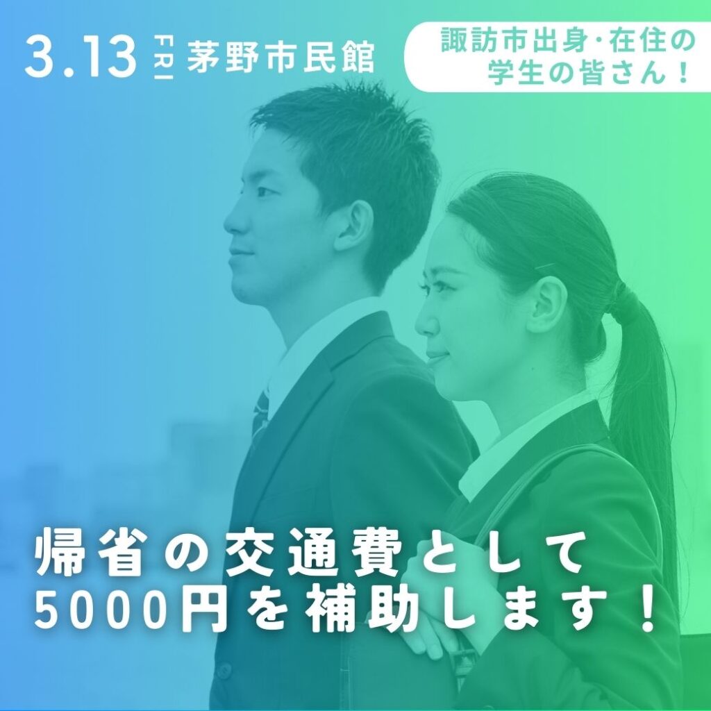 物価高騰に悩む、諏訪市出身・在住の学生の皆さんに向けて、諏訪市の企業は皆さんを応援します!