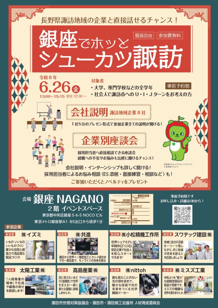 6/26|銀座でホッと、シューカツ諏訪 開催!